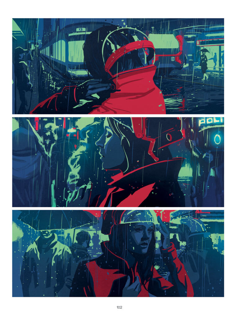 Bez obzira na pojednostavljen narativ, “Asphalt Blues” je vizualno neodoljiv upravo zbog Salaünovog crtačko-kolorističkog stila. Riječ je o estetski raskošnom djelu koje odiše filmskim neo-noir ugođajem i iznimno promišljenim koloritom. Salaün koristi široku paletu boja, pri čemu svaka sekvenca ili pripovjedna perspektiva dobiva svoj prepoznatljiv vizualni identitet, stvarajući dojam gledanja pažljivo režiranog art filma. Stilski se naslanja na fotorealizam, ali zadržava dozu stilizacije koja podsjeća na najbolje uratke suvremene francuske škole stripa. Ako ste guštali u Cosmatosovom “Beyond The Black Rainbow” kao ja, onda je “Asphalt Blues” stripovska preporuka, a dobavljiv je u Darkwoodovom izdanju s tvrdim koricama. Hvala ti Miki Lakobrija na asistenciji u dobavljanju!